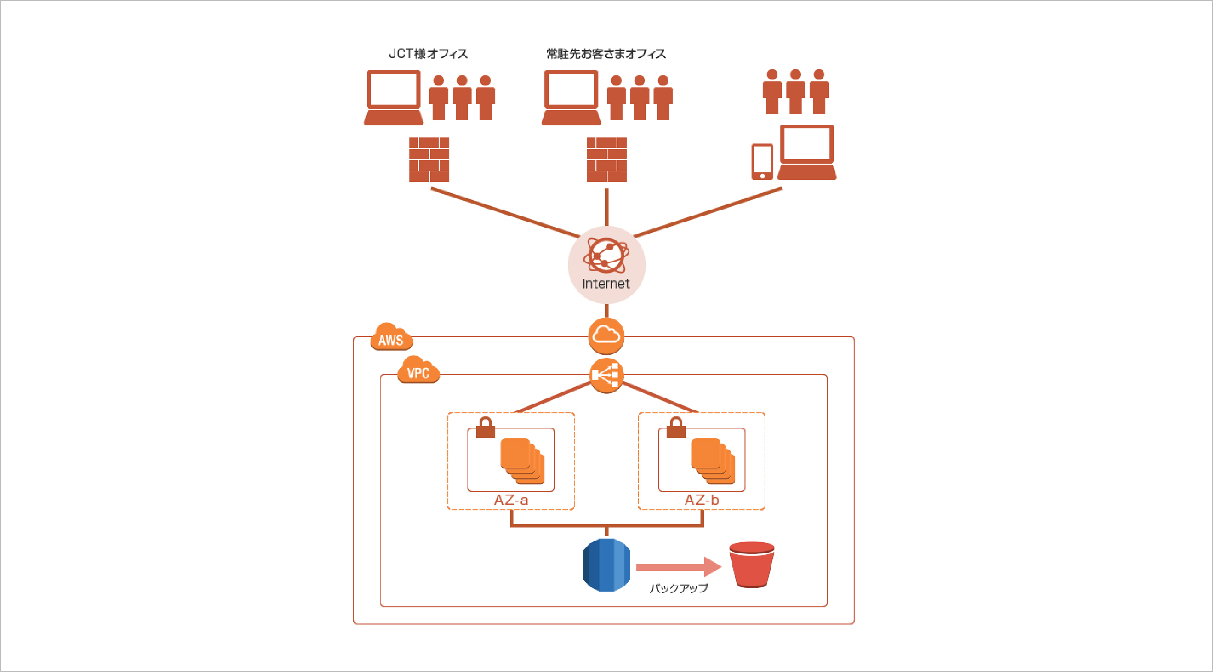 いかなる場合でもメールを閲覧・返信できる環境を、アマゾン ウェブ サービスを活用して、構築しました。これにより、社外、社内からのメールを安心利用できるようになりました。