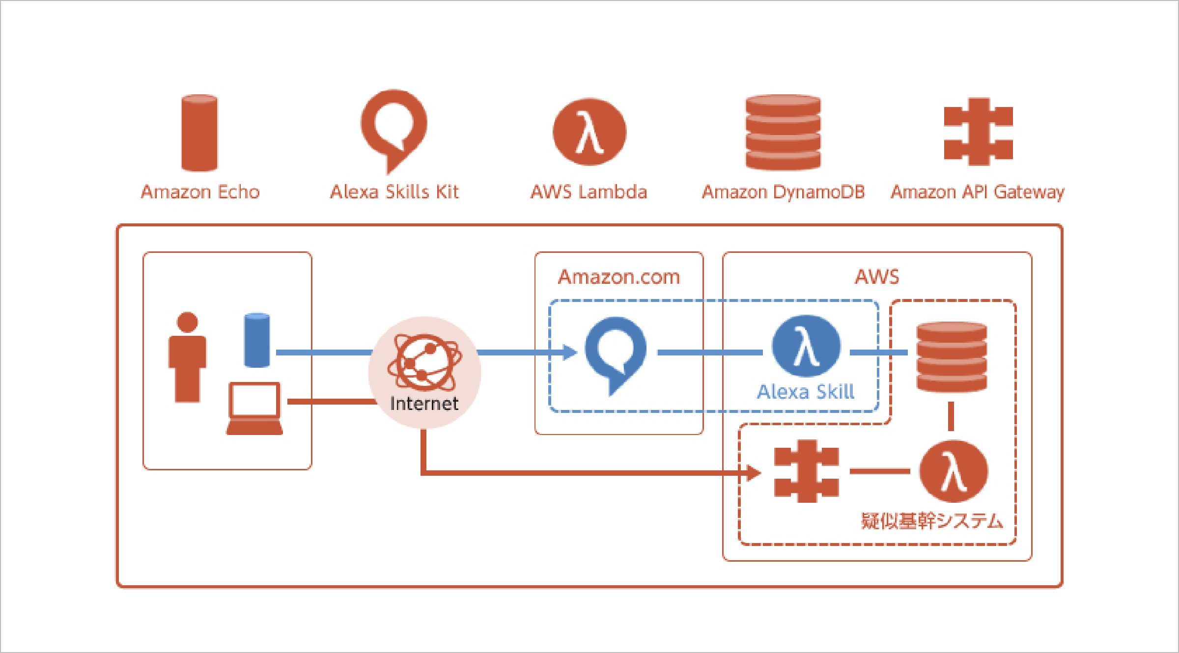 日本市場へのAI音声アシスタントとスマートスピーカー投入が噂される中、本案件では高いスピード感で実験を進める必要がありました。Amazon Alexaは、いち早く市場に投入されたスマートスピーカーAmazon Echoに対応したAI音声アシスタントとして非常に高い注目を集めており、米国内での多くの実績や充実した開発環境が提供されています。また、AWS Lambdaは、Alexaの開発環境であるAlexa Skills Kitとシームレスに統合されており、両サービスの組み合わせにより、限られた期間内で本来的なユースケースの検討に、より多くの時間を使うことが出来ると期待し選択しました。