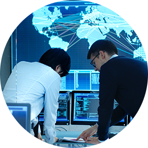オペレーションルームでは24時間365日システムの監視をしています。データセンター運用として厳しく定めたセキリュティポリシーに基づきセキュリティ管理をしております。